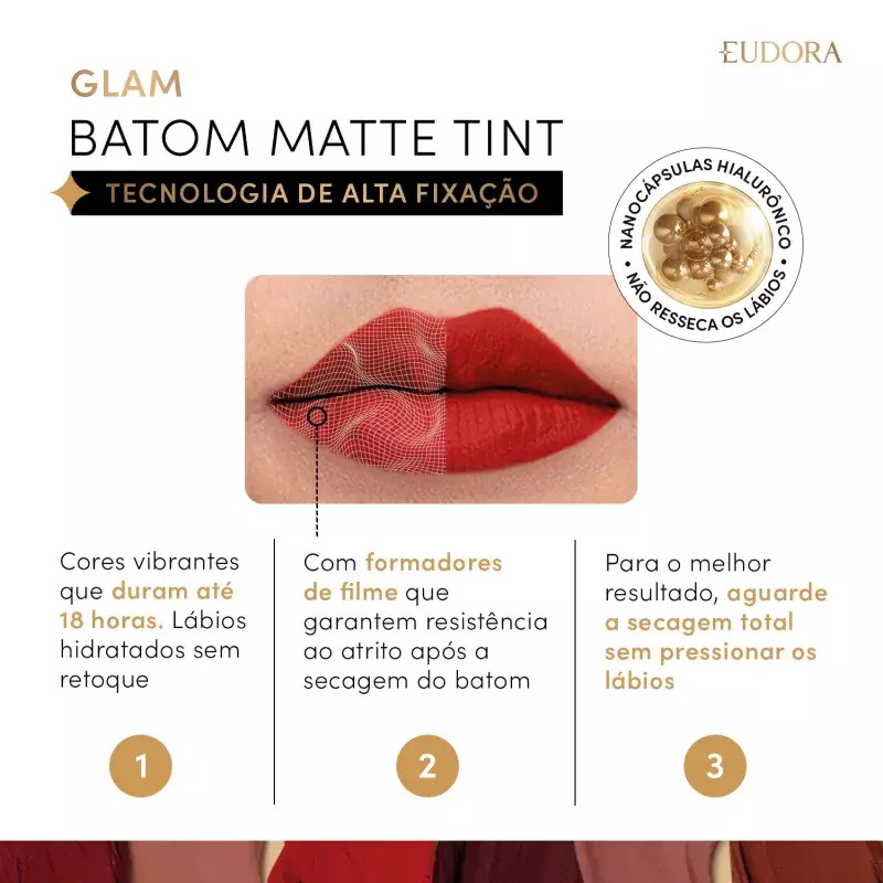O batom líquido mais vendido de Eudora de cara nova com 18 horas de duração sem retoque e agora com ativos de tratamento!