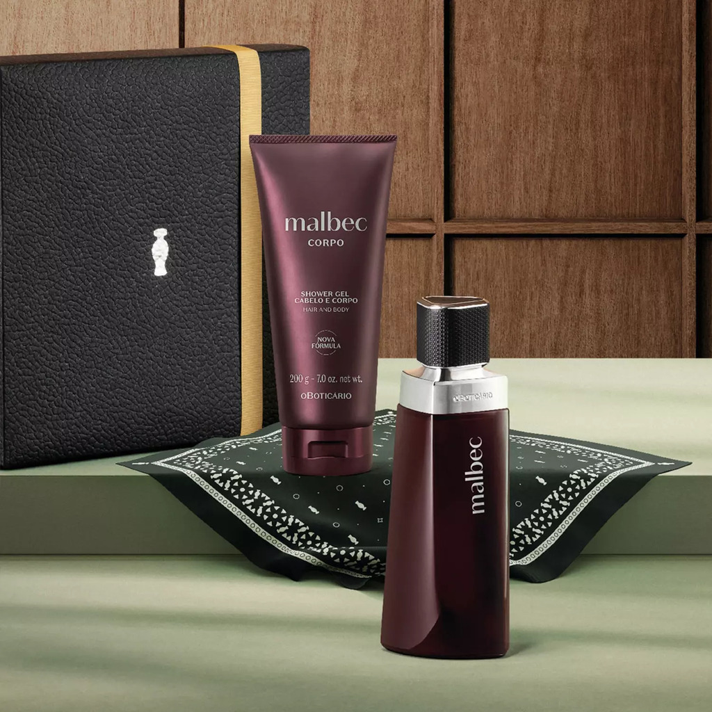 O Kit Presente Malbec é exclusivamente criado para surpreender aquele que está com você em todos os momentos! A fragrância marcante da linha foi desenvolvida por um processo de fabricação exclusivo no mundo e é inspirada no universo dos vinhos. Com dois itens de autocuidado, é ideal para homens que querem deixar a sua marca por onde passam. Este presente masculino vem embalado em uma caixa de presente especial: